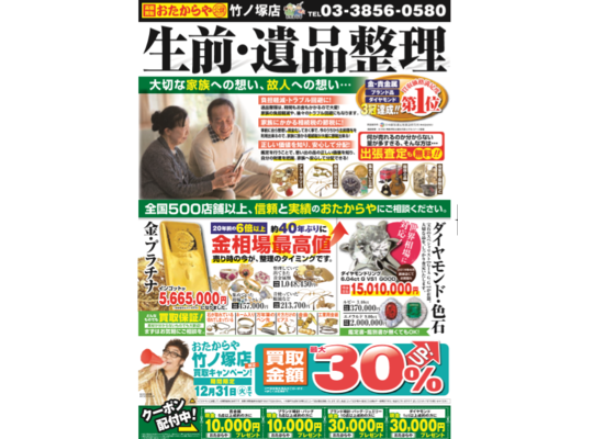 遺品整理、生前整理もおたからや竹ノ塚店へ